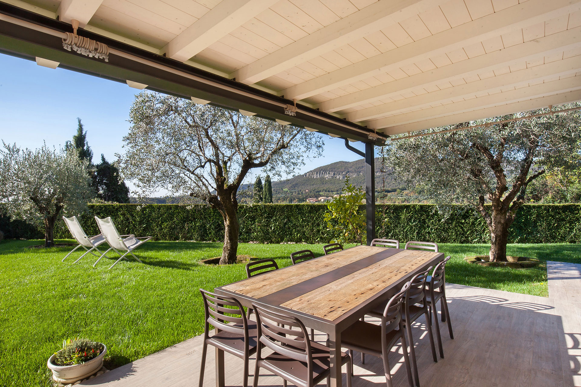 Il giardino rigoglioso che circonda la villa offre un'oasi di pace, ideale per rilassarsi, dedicarsi ad attività all'aperto e organizzare momenti conviviali con amici e familiari. A completare l'esperienza, una piscina privata con un'area relax attrezzata con lettini e ombrelloni, perfetta per godersi il sole in totale privacy.