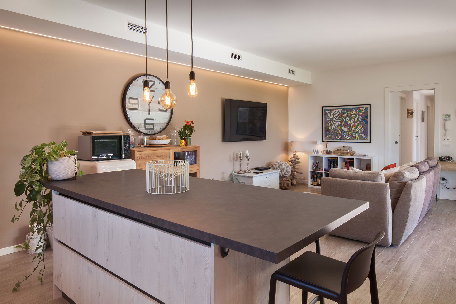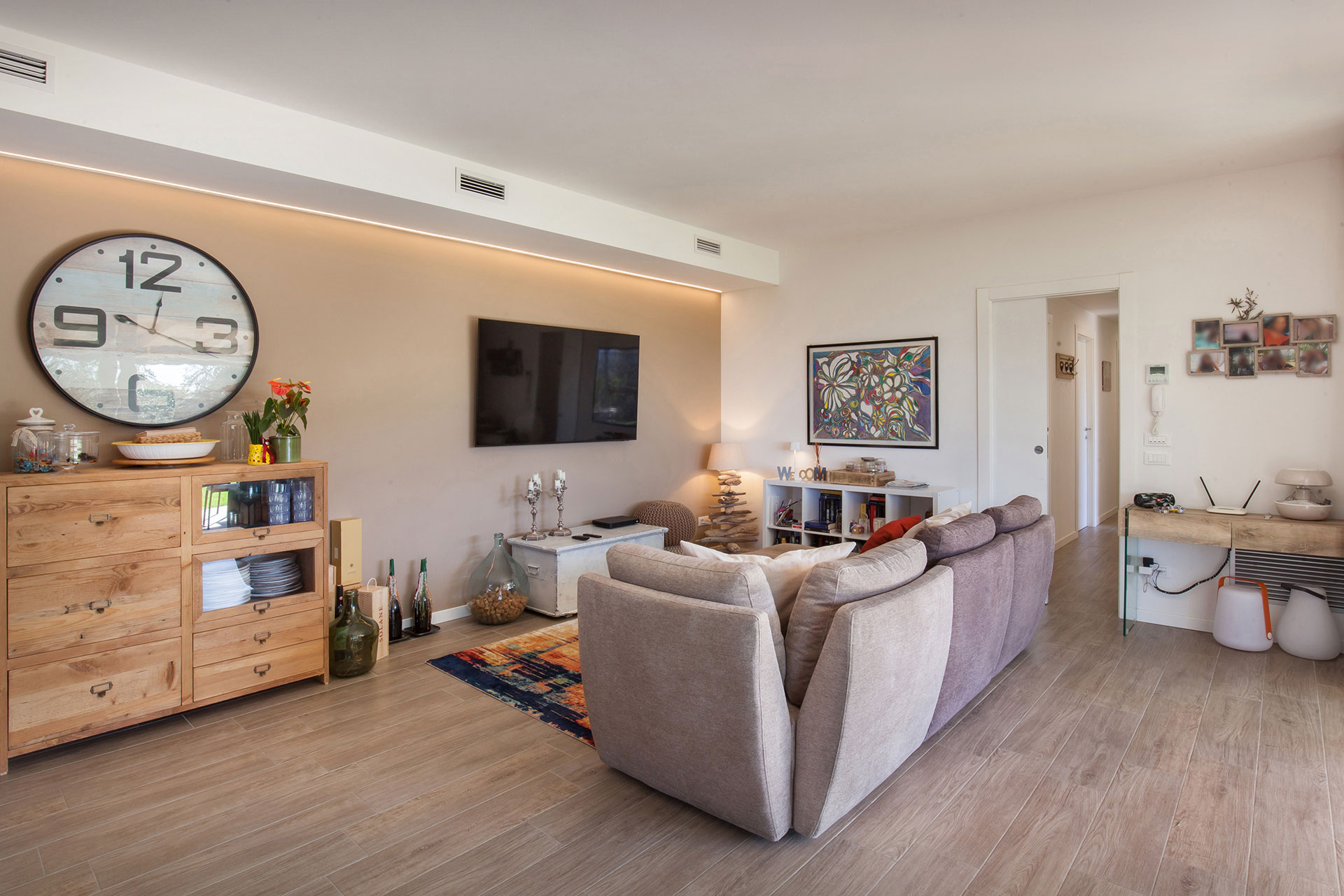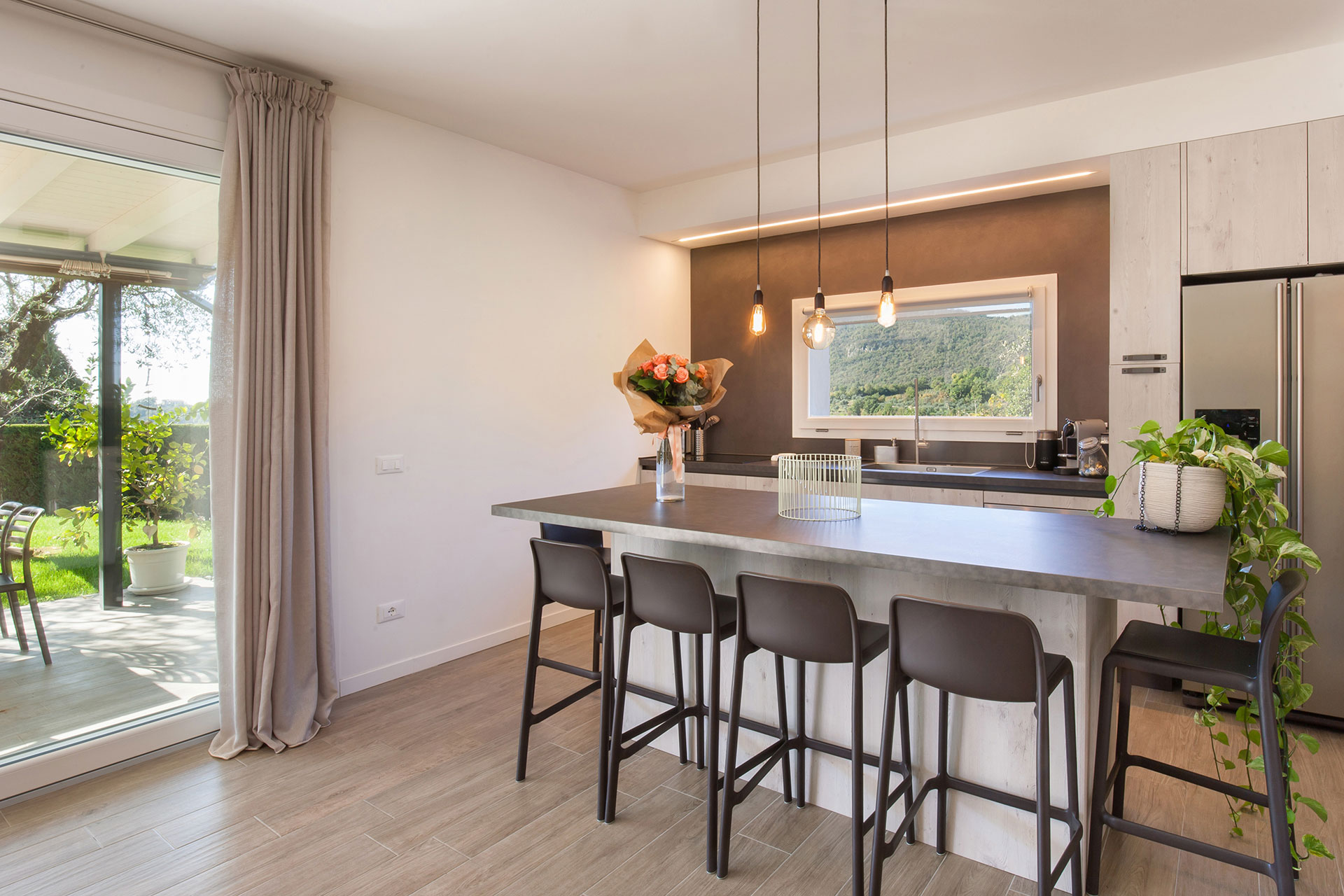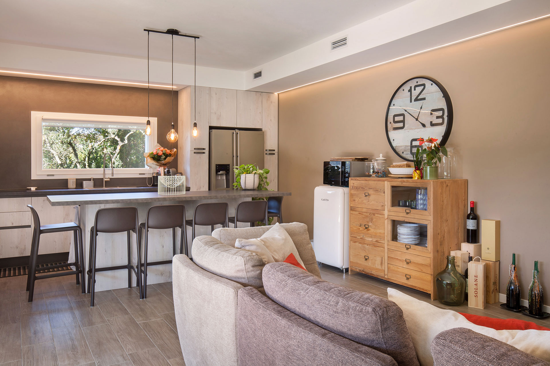 Gli interni presentano un'ampia zona giorno open space, luminosa e accogliente, con un soggiorno moderno e una zona pranzo di classe. La cucina, completamente attrezzata con elettrodomestici di alta gamma, è il sogno di ogni appassionato di cucina, ideale per creare piatti deliziosi in un ambiente elegante.