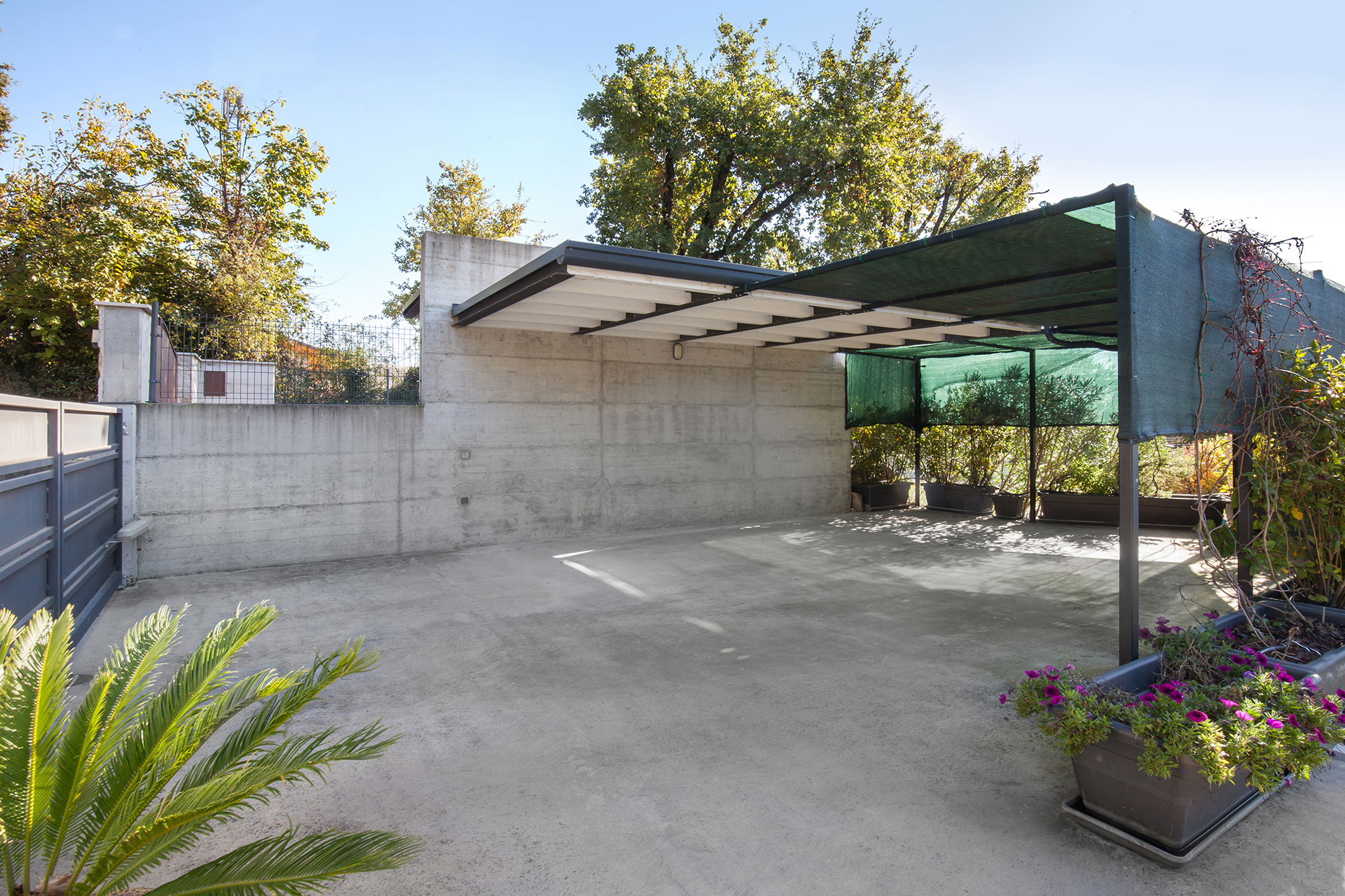 All'esterno, due posti auto privati coperti assicurano la comodità di parcheggiare all'interno della proprietà, rendendo la quotidianità ancora più agevole.